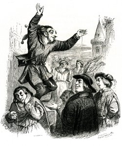 (Illustration of the novel Robinson Crusoe by Daniel de Foe (DeFoe) by Grandville - edition Garnier 1869 p193. Robinson shoots with a rifle in front of frighy Friday.)ग्रैंडविल (1803-47) |
