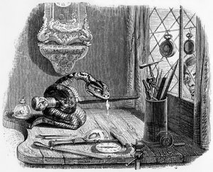 (Grandville engraving from the book “” Private and public life of animals (Les animaux painted par eux memes)””, Hetzel edition 1867 - Caricature: wild boar writing a petition.)ग्रैंडविल (1803-47) |