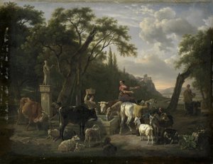 दो गायें और एक औरत लेटी हुई(Two Cows and a Woman Lying Down)जीन लुइस डेमारने |