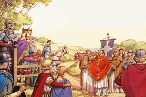 (A medic at the gladiatorial games patches up survivors)पैट (1907-95) निकोल |