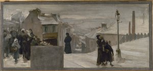 पेरिस वाणिज्यिक न्यायालय के न्यायालय कक्ष का रेखाचित्र: गैलो-रोमन युग में पेरिस के नाविक, लगभग 1890 (कैनवास पर तेल)(Sketch for the courtroom of the Paris Commercial Court: Les Nautes parisiens à l'époque gallo-romaine, ca. 1890 (oil on canvas))पॉल लुइस डेलेंस |
